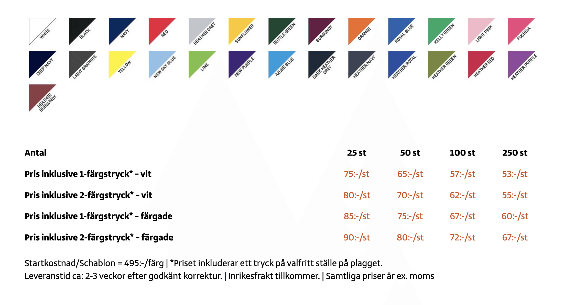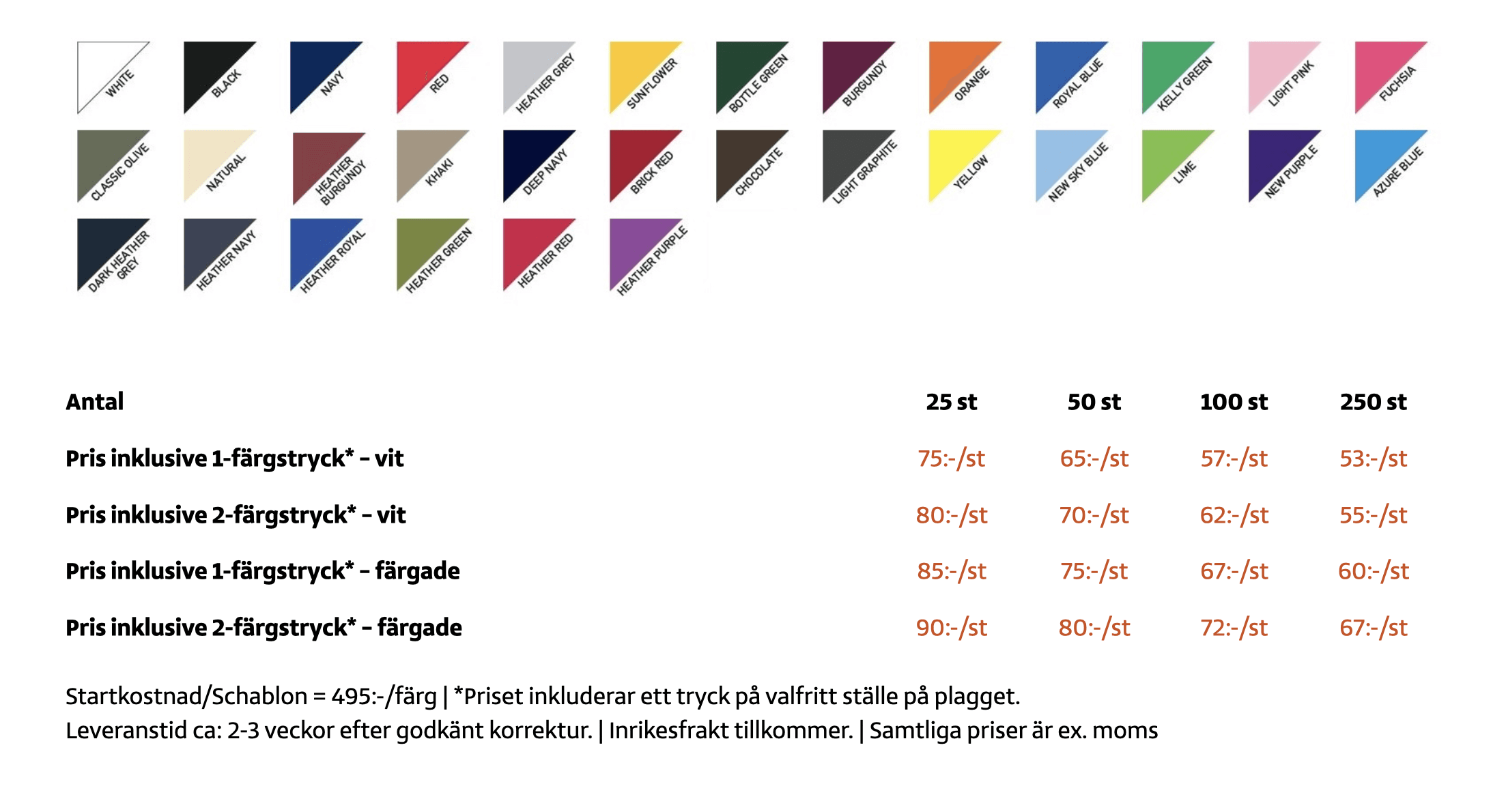 Klassiska T-shirts och praktiska kassar med tryck – perfekta för kampanjer, event och vardagsbruk. Enkla, snygga och lätta att anpassa med ert varumärke.